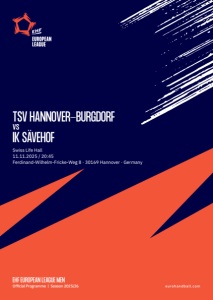 TSV HANNOVER-BURGDORF IK SÄVEHOF vs EHF EUROPEAN LEAGUE MEN Official Programme | Season 2025/26 Swiss Life Hall 11.11.2025 / 20:45 Ferdinand-Wilhelm-Fricke-Weg 8 · 30169 Hannover · Germany eurohandball.com